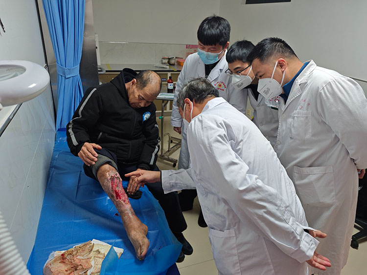 2月9日,《中国烧伤创疡杂志》编委、烧伤创疡再生医疗技术临床专家张强主任应邀到访英山县人民医院和英山县中医院,参与会诊一例三度烧伤患者及一例疤痕性溃疡患者。张主任详细了解患者受伤过程,结合前期治疗情况,与临床工作人员共同商定后期治疗及康复方案,并亲自示范烧伤患者清创与换药流程。其专业指导获得患者家属及临床工作人员的高度认可。