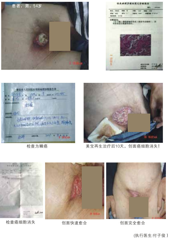 (6)皮肤癌临床应用重复:皮肤腺癌52天被治愈,皮肤鳞癌一个月被治愈。