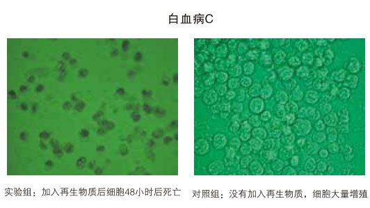 ①癌细胞培养试验:选数种癌细胞系,在体外分别进行细胞培养试验,向培养液中加入一定量的再生物质,其培养结果是癌细胞在48小时后死亡。
