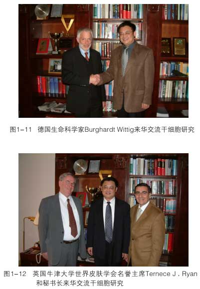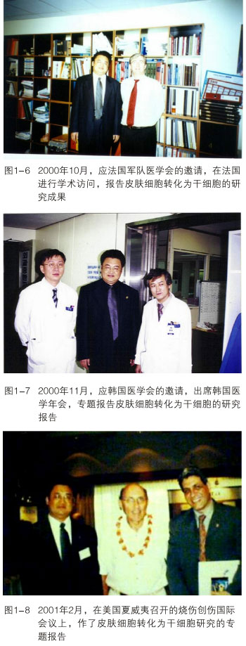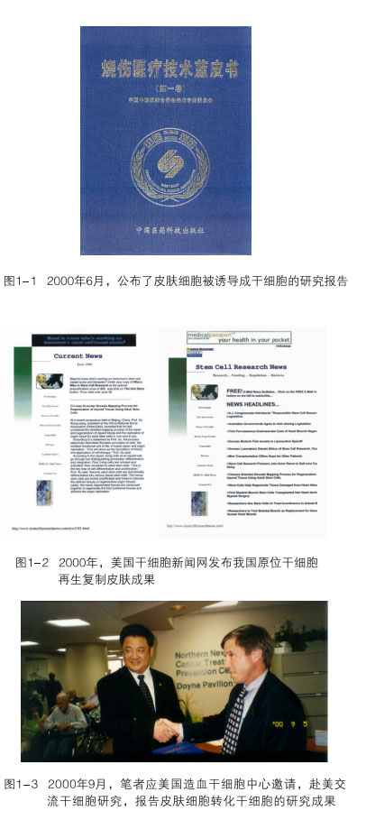 虽然我们在国际国内学术会议上反复地讲解身体内由体细胞转化为干细胞的实际规律,但世界胚胎干细胞研究的狂潮席卷生命科学界,各大学和医院都设立胚胎干细胞研究室,都在按同一个梦想奋进。于是,我们又在2002年8月,搞了一个生命科学大爆炸新闻发布会,宣布已成功地实现了体细胞转化为干细胞(潜能再生细胞)再克隆器官的全过程,公布了克隆出的组织器官实物,并宣称5年后完成人类组织器官的全部复制。国家科技部也组织院士进行了科学听证会议,随即,美国举行的世界干细胞与再生医学大会和在新加坡举行的干细胞大会特约我做嘉宾作如何用体细胞克隆组织器官、和临床如何用于治疗创伤和胃肠溃疡疾病的专题演讲。2004年,世界三大医学文献出版社之一的瑞士KARGER出版社①正式出版了我的再生医学英文专著《烧伤再生医学与疗法》,封底书评介绍,这是一本用临床应用实践陈述普通细胞原位再生皮肤器官过程的书,对细胞生物学、干细胞研究、免疫学研究等,都有着极其重要的价值。出版社为了对大家的科学研究产生有利的作用,在出版社的网站上写道:这是一本“革命性的和令人惊奇的”著作。这样的呼吁,在世界范围内产生了较大的影响,比如德国、英国、美国等国知名的生命科学家专程来华与我们交流干细胞的研究,瑞典科学委员会委托国家电视台专程来华采访。美国史丹佛大学特约去大学作专题学术报告,美国哈佛大学皮肤学教授们专程到家里进行学术交流。