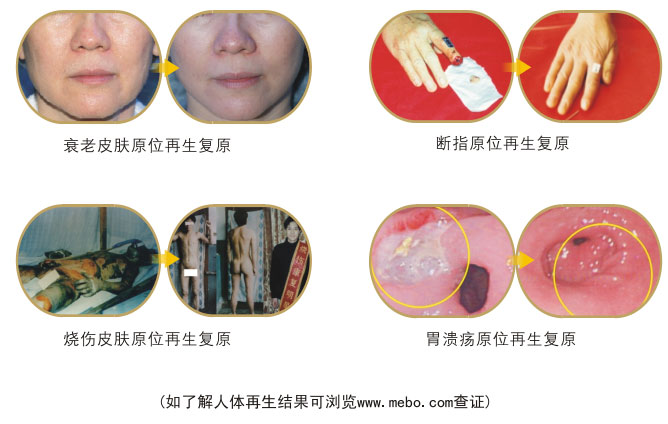 我们在烧伤后皮肤器官再生的研究中,实现了在失去皮肤器官的创面上重新再生出新的皮肤全部器官,破解了皮肤器官原位再生的秘密,继而实现了人体各器官的原位再生,并确立了人体器官中具有第二次生命再生的细胞——潜能再生细胞的科学体系,最终使全身全厚皮烧伤的皮肤原位再生、断指再生、胃肠再生等多器官的原位再生不再仅仅是科学梦想,而已成为事实。这一系列发明创举,均获得了国际著作权和美国、中国等多项专利权,名副其实地成为实现体细胞克隆器官、原位器官再生、人体再生的世界唯一。我们用皮肤潜能再生细胞再生为原位干细胞,用原位再生更新和再生复原皮肤全部器官的技术,实现了正常皮肤的再生更新维持、衰老皮肤的再生复原年轻、使皮肤器官的抗衰老和留住青春变为事实;美宝皮肤原位再生复原技术就是由器官原位再生技术演化而来的。
