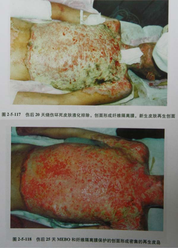 (4)应在伤后20天内彻底清除坏死组织使创面新鲜再植皮,消除创面。