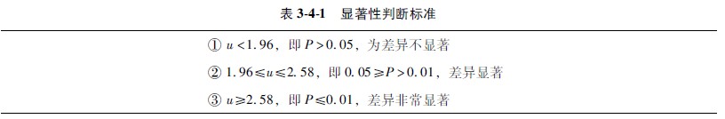 率的u检验是应用范围较为广的一种显著性检验方法,但是在用于样本率与总体率比较时,或两个样本率比较时,应当考虑其差异是否由于抽样误差所造成的。大样本的样本率分布近似正态分布,可用正态分布的规律检验样本率与总体率或两个样本率差异的显著性。其判断标准为: