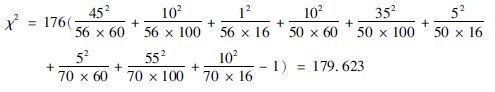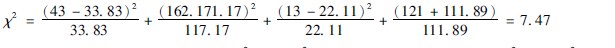 3计算χ2值:可将表3410中的数字代入公式(3413),得: