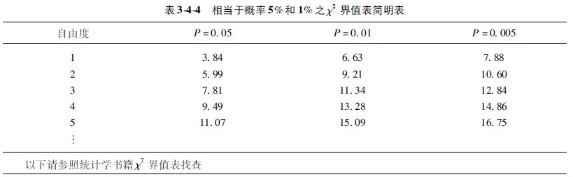 χ2值无单位,与它相应的概率为5%的χ2值(χ2 005)和概率为1%的χ2值(χ2001),可由卡方简明界值表344中查出。