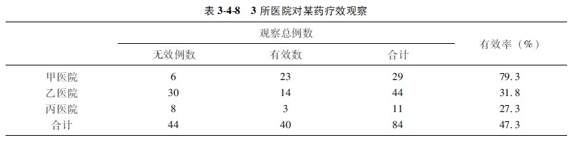临床经常遇到3组或3组以上的多格资料,其计算方法仍以公式(3413)为基础 。现举例说明: