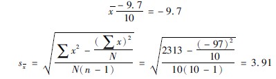 3分别计算差数的平均值(x)与标准误(sx):