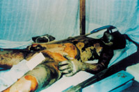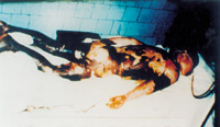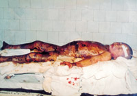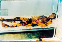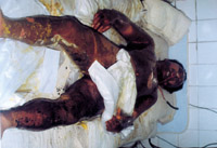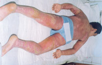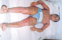 病例八:患者18岁,液化汽火焰烧伤,95%TBSA,这是治疗前的表现 1.前面