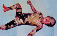 病例六:患儿7岁,石灰烧伤90%TBSA 这是治疗前的表现