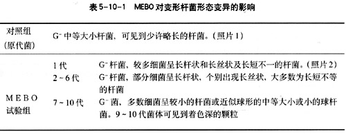 (1) MEBO对变形杆菌形态变异的影响(见表5-10-1)