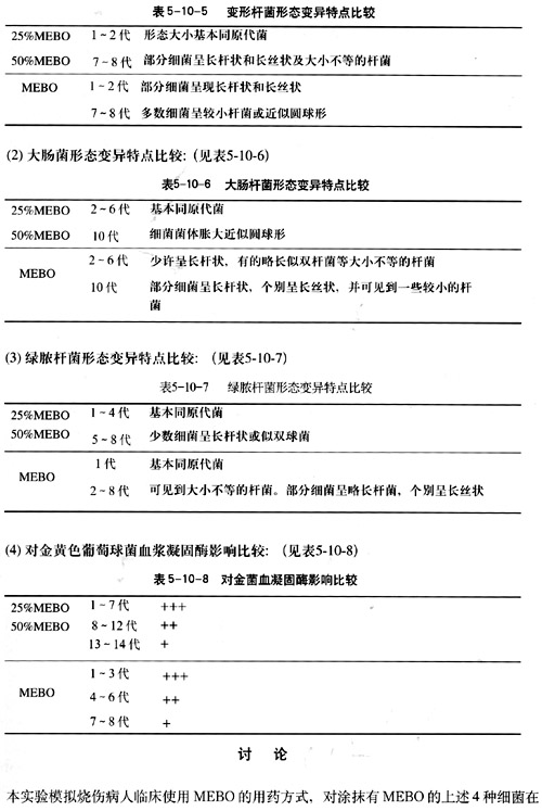 实验结果进一步说明了MEBO比含25%MEBO和含50%MEBO的抗菌作用都强。至于上述细菌变异现象的产生机制尚须深入探讨研究。