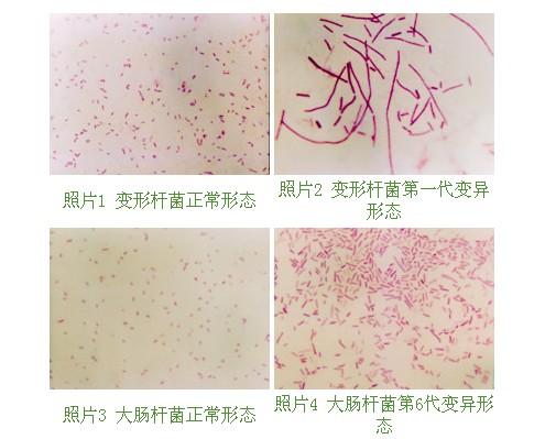 (2) 对上述4种细菌在MEBO和在含25%MEBO、50%MEBO培养基上细菌的形态结构、变异特点进行比较。
