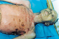 3-14 多次植皮,伤后第70天的表现,病人残废