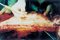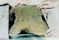 3-7 取异体皮,打洞拉网,将其作为临时覆盖物