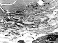 5-2-5 伤后第5天,胶原纤维相互融合,其间的细胞已崩解 TEM×6000