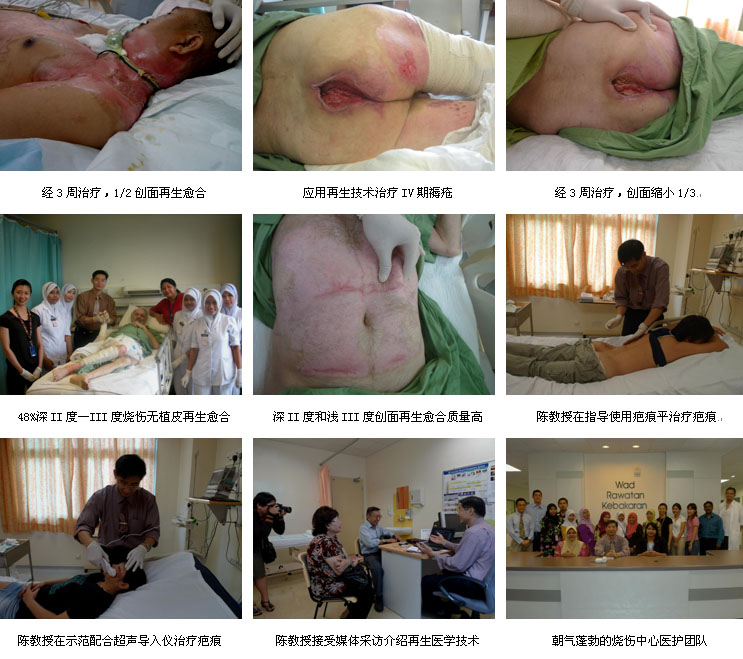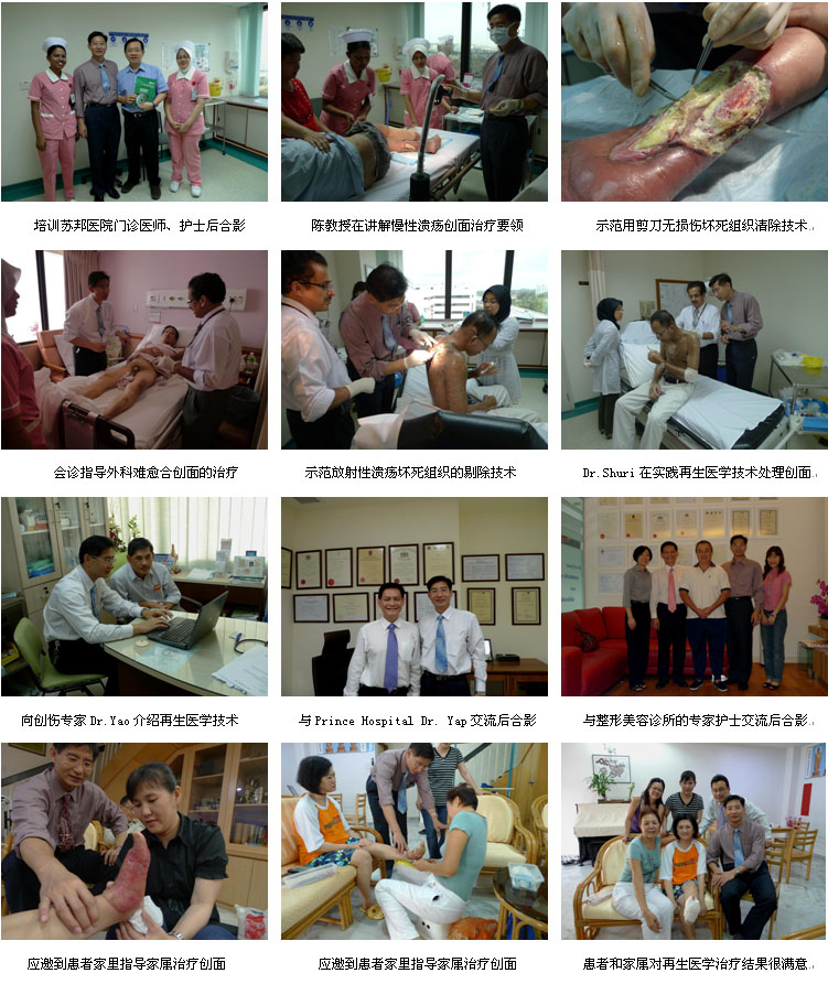 6、2010年4月23日,吉隆坡中央医院(马来西亚最大医院,2500病床和吉隆坡大学医院的烧伤再生医学技术培训和学术交流会在吉隆坡中央医院烧伤整形科教研室举行。培训会由吉隆坡中央医院烧伤整形科主任Dr. Normala教授主持,来自这两家主要医院的烧伤、整形和创伤专业的20余名专家参加了培训会,陈教授应邀向参会的主要专家演讲了烧伤再生医学与疗法的皮肤再生机理、临床技术规范和该技术在其它多学科的应用,引起了大家极大的兴趣和学习热情,为下阶段烧伤再生医学技术进入这两家马来西亚最大、最主要的医院,做好了充分的准备。