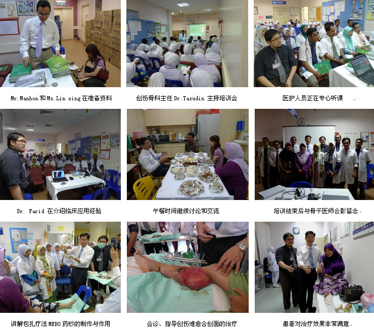 2010年4月1日至25日,马来西亚新一年的第一轮医疗开发工作先后在首都吉隆坡市、苏邦市、八达灵.再野市等6个省、市展开,集团财务总监李翠和国际部徐冲经理也到现场督战,中国烧伤创疡科技中心临床部主任、北京荣祥再生医学研究所副所长、北京中西医结合学会烧伤专业委员会副主任委员、中国烧伤创疡杂志社副社长陈永翀教授先后应邀到多家政府医院和私营医院,进行烧伤再生医学技术培训、学术交流、到烧伤中心和创伤骨科会诊指导烧伤创疡病例的治疗,以及和各医院的主任、院长研究讨论临床科研工作的开展和烧伤创疡再生愈合中心的建设等,很受医院、医师、护士和患者的欢迎。在25天的时间里,先后举办了院级培训班8期,重点专家学术交流7次,培训了烧伤、整形、普通外科、骨科的医师和护士300余名,对 3家老医院进行了有效的维护和促进,成功新开发了3家大型政府教学医院和2家私营医院,帮助建立了一家烧伤中心(国家级技术规范基地),会诊、指导危重疑难病例:烧伤10例(特重度烧伤4例),创伤11例,慢性溃疡15例,疤痕3例,皮肤病2例,实现了较好的医疗开发、维护和进一步规范临床技术的效果。
