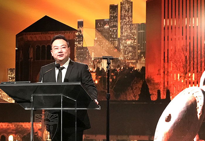 南加大不仅教导我继续奋斗,更重要的是,让我了解到为谁和为何而奋斗,并给了我不懈追求的勇气。特洛伊人(南加大人)的精神持续带给我力量,让我把握命运,勇担责任,践行我父亲的承诺,为每年数以千万计烧伤病人的生命带来改变。”徐鹏接着说。