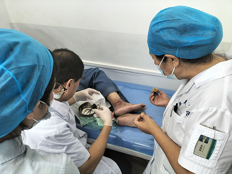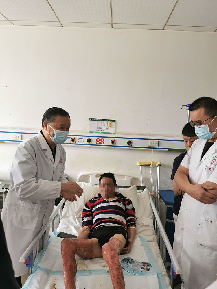 2023年7月12日,《中国烧伤创疡杂志》编委、烧伤创疡再生医疗技术临床专家张强,应湖北省松滋市人民医院普外科李主任的邀请,会诊多例烧伤及慢性难愈创面患者,张教授亲自示范指导换药,并就换药过程中要注意的细节问题进行了讲解,针对每个患者的具体情况给出了后续治疗方案,得到了医生和患者的高度认可。