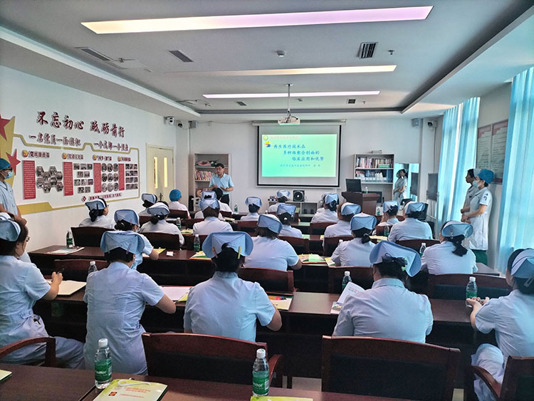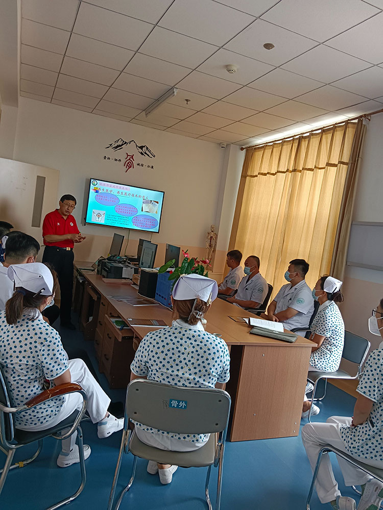 2023年7月26日,中国中医药高等教育学会临床教育研究会肛肠分会常务理事、北京中西医结合学会烧伤专业委员会副主任委员、北京中医药学会肛肠专业委员会委员、《中国烧伤创疡杂志》常务编委张勇,受邀来到阜新市第二人民医院,张勇教授本次主讲再生医疗技术在难愈合性创面的临床应用和优势,张勇教授用丰富的临床经验,诠释了再生医疗技术在护理工作中的重要性、实用性,分享了在烧伤、压疮、糖尿病足、皮肤科、内分泌以及肛肠科等学科的典型病例,讲述了再生医疗技术在临床应用中的优势,学术交流过后,张勇教授与护理部主任,护士长进一步探讨交流,并对门诊患者进行换药实操指导,此次学术交流为医院护理工作铺垫了新台阶,为阜新地区慢性难愈合创面患者带来福音。