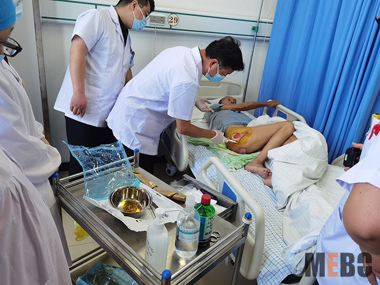 2022年6月14日,因稷山正身医院的邀请,再生医学知名专家、《中国烧伤创疡杂志》常务编委赵瑞庆主任,急前往该院与当地医务人员共同抢救因铁水烧伤的四名工人,简易清创后,全部患者用再生医疗技术进行救治,赵主任还与医务人员讨论了每例烧伤病情,制定了详细的再生治疗方案。