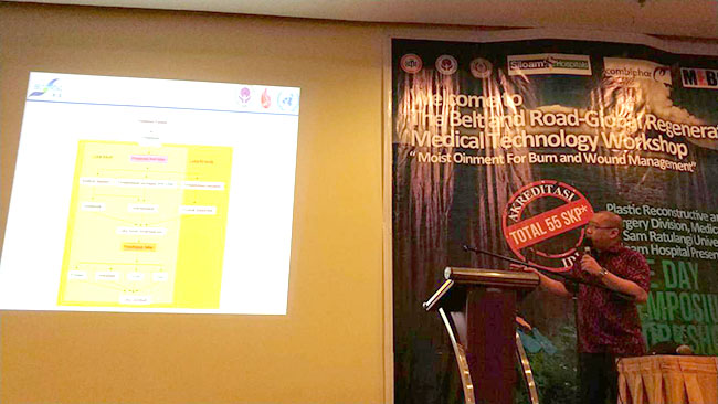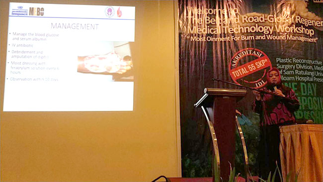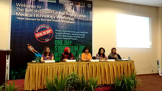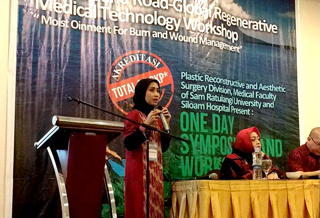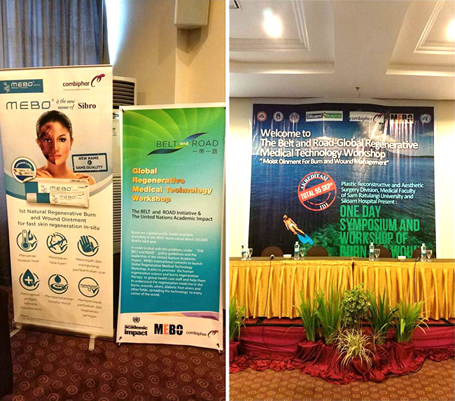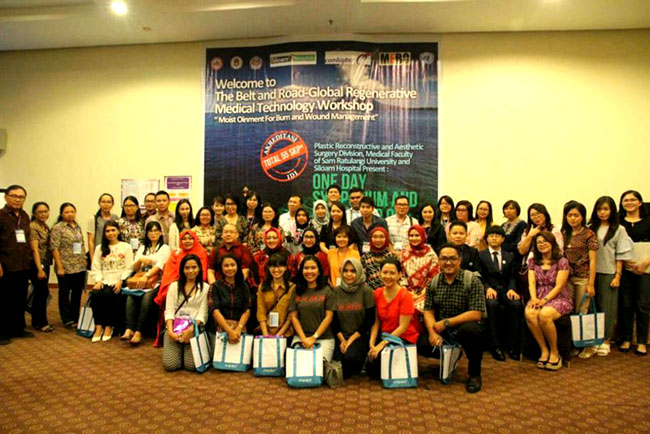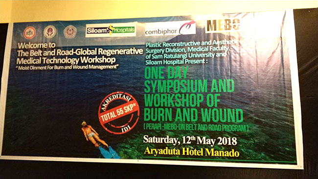 5月12日,由美宝和Combiphar主办的第一期大型再生医学培训班在印度尼西亚美娜多市成功举办。来自雅加达Koja整形医院、Pelni/Rawamangun/Poli等医院烧伤创疡科、儿童医院、武警医院的8名再生医学专家和美娜多当地Siloam医院、周边地区社区医院、当地媒体等共255人参加了本次活动,详细报道如下: