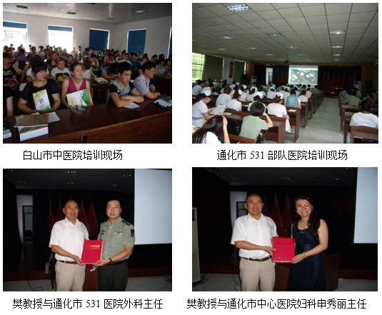 7月份通化、白山地区已步入炎炎夏日,医护人员的学习热情如天气一般火热。2012年7月16日到21日应通化地区、白山地区基层的邀请,中国中西医学会烧伤专业委员会的樊兆宗教授来到了通化、白山地区。对该地区的通化市531医院、通化市中心医院、柳河县妇幼保健院、柳河县六道沟卫生院、柳河县姜家店乡卫生院、白山市中医院、白山市妇幼保健院、白山市铁路医院共8家医院及乡村医生进行了再生技术培训和推广。本次技术培训为期6天,900余名医护人员得到了培训,实现了将再生技术向基层医院普及推广的目标,让地方医生得到了有效救治病人的方法。