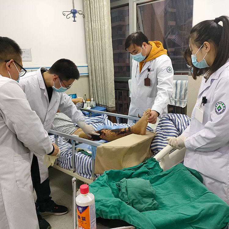 2023年3月13日,中国中西结合学会烧伤专业委员会医疗部张强教授应邀到湖北省荆州市江陵县人民医院会诊多例慢创病人,张教授亲自示范换药操作,同时给医生做细致的讲解,并对后期治疗提出合理方案,得到了李明医生的高度认可。