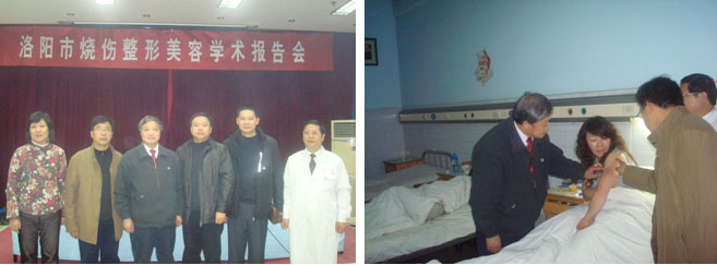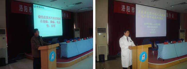 2008年12月19日下午两点中国中西医烧伤专业委员会金党军教授与陈全喜教授在河南省洛阳市医学会的邀请下举办再生医疗技术培训班,金党军教授主讲了徐荣祥教授创立的湿润疗法“皮肤原位再生技术”,并在会上展示了大量的临床烧伤病例图片,受到了各位学者、专家们的赞扬。陈全喜教授就美宝“速愈贴”再生理论与临床实践作了详细报道,会后在病房与临床大夫讲解了速愈贴的使用方法,又对内分泌科临床医生就“速愈贴”再生医疗技术治疗糖尿病坏死足进行了现场创面处理。和洛阳市医学会副会长雷万军就普及再生医学技术进行了广泛的交流。洛阳市医学会副会长雷万军发表了热情洋溢的讲话。洛阳市第一人民医院业务院长郭圣敏主持大会。到会人员68名,有外科、整形科、烧伤科、内分泌科。河南省办事处主任赵俊国、区域经理吕继斌到会与专家们交流“速愈贴”在全国各医院使用情况,此次大会受到洛阳市医学会领导、专家们的好评。此次活动受到河南地方美宝团队的大力支持。