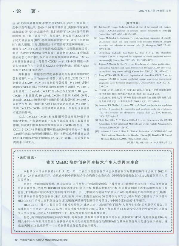 中国当代医药杂志:我国MEBO烧伤创疡再生技术产生人类再生生命