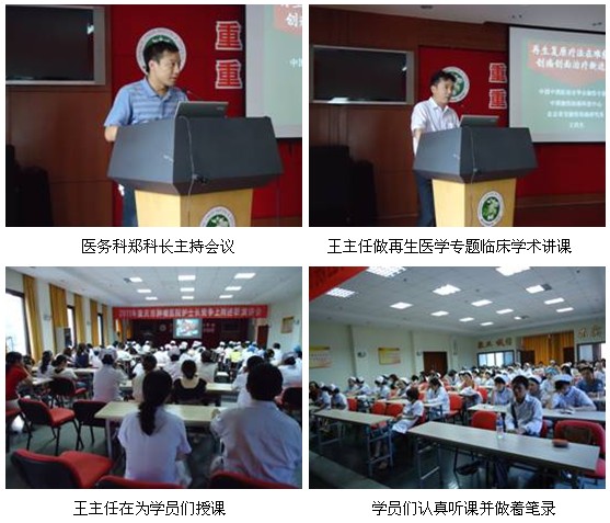 该院医务科郑科长主持了学术讲座,他对王主任的到来表示热烈的欢迎。随后,王主任就以“再生复原疗法在难愈性创面治疗新进展”为题进行了专题学术讲座。该医院各个科室的100余名医护人员聆听了学术讲座,现场学习气氛浓厚,有的还做起来笔录。讲课结束后,学员们对再生医学医疗技术评价非常高,并表示今后遇到难愈合创面时会用再生疗法帮助患者得到最好的治疗。