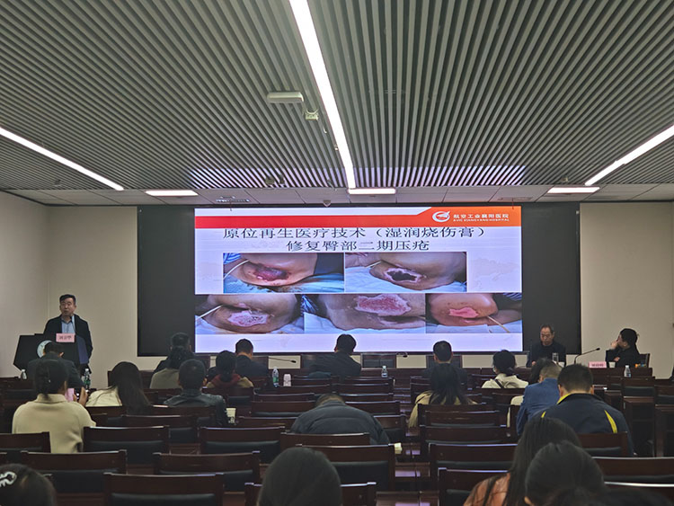 2025年11月5日,中国中西医结合学会烧伤专业委员会委员、北京中西医结合学会烧伤专业委员会副主任委员、《中国烧伤创疡杂志》常务编委张勇教授受邀来到朝阳市中医院,讲解再生医疗技术在难愈合创面的规范应用。会议中,医护人员与张教授深入交流,张教授通过实际病例阐述了再生医疗技术的应用原则、技术要点及取得的成果,受到全体医护人员的好评与认可。