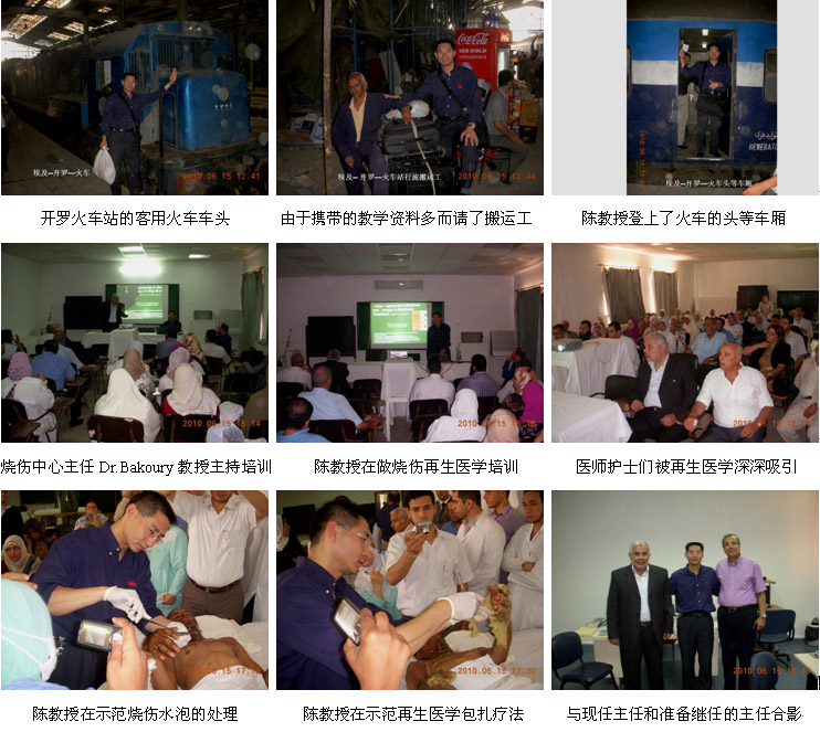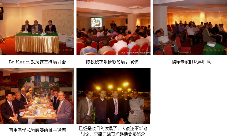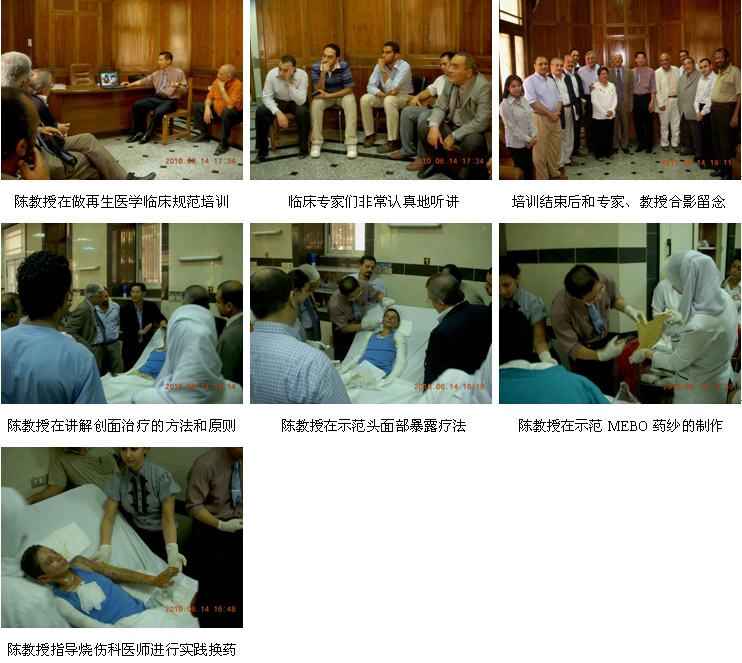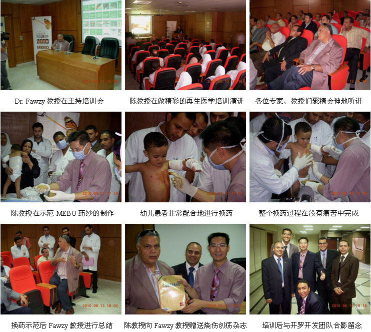 埃及是一个拥有5600年悠久历史的地处非洲的文明古国,全国人口约8500万,人口主要分布在尼罗河流域的开罗市、亚历山大市、塞得港市、明亚市等。多年来,烧伤治疗主要以西医的切削痂植皮技术为主,同时也有一些埃及本土的传统药。MEBO于1996年在埃及注册和销售,经过十多年的努力,MEBO也已经拥有了一定的市场份额,但是多年来一直有一个难以突破的瓶颈,那就是:埃及的医师都比较信奉西医和自己的传统医药,对来自中国的药品一直持怀疑的态度,认为MEBO既不能杀菌,而且临床使用每天还要换好几次药,很麻烦,不想理解、不接受,所以都不太愿意选择MEBO;另外,他们一直认为MEBO只能用于小面积浅度烧伤,如面部、双手的浅度烧伤,用MEBO治疗深度烧伤或大面积烧伤那是不可能的。因此,为了让更多的埃及医师了解、认识、学习和掌握更多的烧伤再生医学与疗法,转变他们的观念,消除他们的误解和偏见,而专门组织和安排了来自中国北京荣祥再生医学研究所(再生医学发明和技术拥有单位)的副所长陈永翀教授分别到开罗大学第一医院、第二医院和亚历山大省政府医院进行烧伤再生医学与疗法的学术报告和进行临床操作示范、成功举办了2场市级培训班等,解答了他们的大面积深度烧伤皮肤再生的问题、非杀菌性菌群控制预防感染的问题、烧伤坏死组织无损伤性液化排除的问题、每天换药清理创面的意义和重要性等,大家听后得以更全面地了解烧伤再生医学,都觉得这项技术非常好,纷纷表示一定要马上应用该技术去治疗各种面积和深度的烧伤患者,帮助患者实现更理想的临床治疗效果。可以说,这次埃及的医疗开发工作具有非常重要的里程碑意义。