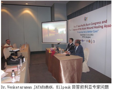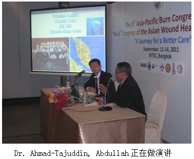 在演讲后的问答环节中,与会医生提出在再生医学治疗过程中创面清理问题,Dr. Ahmad-Tajuddin, Abdullah着重提到再生医学治疗过程中,创面清理应该遵循的三个及时以及三不原则,由此才可以取得良好的疗效。叙利亚专家就供皮区的治疗时间为2个月提出疑问,因为他们的经验,使用美宝再生技术,3-4周甚至更短的时间就会再生愈合得很好,Dr. Ahmad-Tajuddin, Abdullah解释说,在其介绍的病例中,供皮区取得“过深”,导致了一个类似于三度的创面,才是治疗时间延长。
