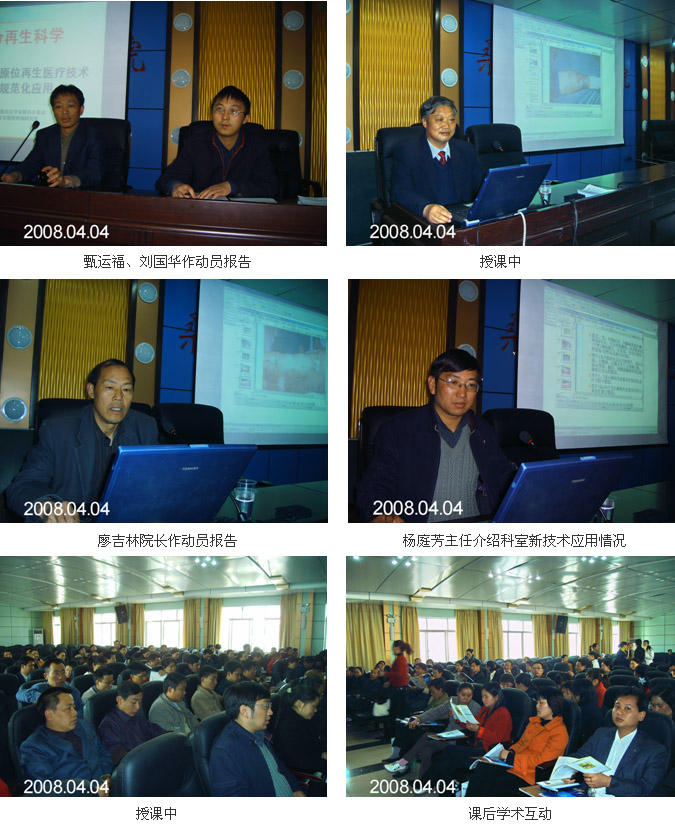 2008年4月4日下午2点30分,清明节放假的第一天,由张家界市桑植县卫生局、卫生监督所、桑植县中医院承办的“烧伤医学新进展学习班”在桑植县中医院四楼会议室举行。来自桑植县人民医院、桑植县中医院、桑植县各乡镇医生共300多人在这里参加了学习班。桑植县人民卫生监督所所长甄运福、桑植县卫生局副局长黄宏光、科长刘国华、桑植县人民医院廖院长、主持会议并发表了热情洋溢的讲话,他在讲话中对与会的各位领导、专家和与会学员表示热烈欢迎和衷心感谢,对我国著名生命科学家徐荣祥教授近年来在生命再生科学、人类组织器官克隆、烧伤再生医学等领域所取得的重大临床和实验研究成果给予了高度评价,对能在百忙之中抽出时候来到山区给学员讲课的金教授表示了万分的感谢。