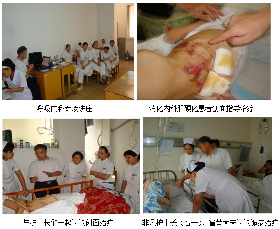 2009年8月6日下午三时,在该院外科大楼六楼教育报告厅,中国中西医结合学会烧伤专业委员会委员金党军教授应邀为伤口护理小组成员及多科室护理人员进行了再生医疗技术在烧伤,创伤创面治疗中的应用培训。金教授从再生医学理论和湿性医疗技术,烧伤原理讲解了烧伤皮肤再生医疗技术(速愈贴)在创伤,溃疡,电击伤等临床应用,并展示大量丰富的图片,由浅到深,深入人心。讲解结束后,金教授又到消化内科为一七十多岁老年患者会诊,该患者有肝硬化和低蛋白血糖症,全身有大面积创伤,渗液特别多,潘群护士长就如何处理渗液和不易祛除的痂皮与金教授做了交流,金教授将处理方法和正确使用速愈贴向护理人员作了解答,得到认可,并表示会规范操作;内分泌科一糖尿病足患者深度创面如何用湿润烧伤膏制作油纱条填充,再用速愈贴覆盖。呼吸内科的牟护士长特邀请金教授到该科室就褥疮及溃疡创面治疗又做了一次精彩丰富的讲座。