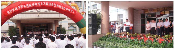 乐陵市孙大鹏副市长和中国中西医结合学会烧伤专业委员会主任委员肖摩教授和为治疗基地揭牌,肖摩主任宣读了中国中西医结合学会烧伤专业委员会批复文件并致辞,乐陵市卫生局局长周曰强为揭牌仪式致辞充分肯定成立烧伤创疡治疗基地的重要意义并提出希望与要求。