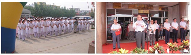 上午9时整,医院门诊大楼前喜气洋洋,一派节日气氛,医院医护人员整齐列队和前来祝贺的各级医疗单位代表和各界和媒体记者欢聚一堂。挂牌仪式由乐陵市人民医院高智亭院长主持,出席开幕式的领导有乐陵市孙大鹏市长,乐陵市卫生局局长周曰强、中国中西医结合学会烧伤专业委员会主任委员肖摩教授、泰山医学院王广顺教授、乐陵市政协主席兼人民医院马院长和市直医疗机构相关负责人,各乡镇卫生院院长及技术骨干近200人参加了揭牌仪式。