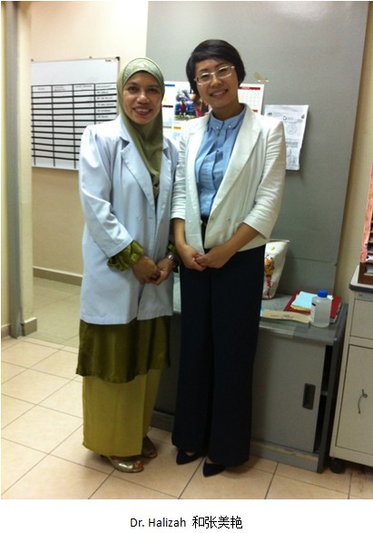 10月25日,张美艳专程拜访了吉隆坡医院的Dr. Halizah, 她将再生疗法用于妇科手术创面,并且兴致勃勃准备尝试在宫颈糜烂等方面的应用,并进行相关的对比试验。Dr. Halizah 反应了药品供应断缺等问题,张美艳及时与代理方的负责人联系,协调解决,并在第二天跟踪确保问题的解决。