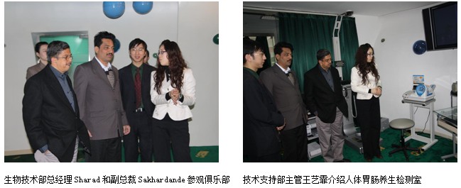 最后,Mr.Sharad和Mr.Sakhardande在技术支持部主任王艺霏的带领下,参观了美宝人体再生复原俱乐部和人体细胞培养实验室,实际观摩了人体再生复原科学技术的应用。Mr.Sharad和Mr.Sakhardande对美宝的先进的科学技术和人文环境给予了高度的评价,并希望人体再生复原科学技术能够早日引进印度,造福印度百姓。
