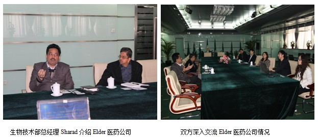 美宝国际集团国际部与印度Elder医药公司一直保持着长期的交流,双方一直希望可以达成合作。美宝国际集团国际部市场人员在今年的三月初对Elder医药公司进行了技术和商务访问。随后,Elder医药公司总经理Alok Saxena迅速安排Elder医药公司生物技术部总经理Sharad和(研发)副总裁Sakhardande对美宝国际集团进行为期一天的技术和商务回访,为下一步双方的全面合作奠定了坚实的基础。