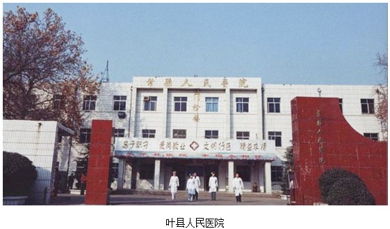 叶县人民医院始建于1952年,建院五十余年来,在党和政府的关怀支持下,经过全院医务人民艰苦创业、奋力拼搏,医院不断发展,现已成为一所集医疗、教学,科研、妇幼保健、卫生防疫,计划生育为一体的综合性医疗单位,是全县的抢救和治疗中心。医院开设床位300张,现有职工477人,在职职工379人,本科学历11人,大专学历71人,中专以下287人。各类卫生技术人员273人,其中高级职称9人,中级职称57人。叶县人民医院几年来在激烈的医疗市场竞争中,坚持以病人为中心,以科技为先导,社会效益第一的办院方针,推动医院全面快速发展。