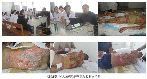 前不久,山东省乐陵县人民医院收治了一例大面积烧伤病人。患者韩XX,男性,38岁,工作中因甲醛发生爆炸,导致全身百分之八十五的大面积烧伤。事故发生后,在东营某医院治疗,因病情较重、生命垂危,回到家乡乐陵放弃治疗。在乡亲们的劝说下,又住进了乐陵县人民医院外科。病情就是命令,医院组织了以副院长高志平、科主任吴长青、住院医生鲁国军、护士长吴燕的抢救小组,立即采用再生医学技术实施救治。期间北京烧伤创疡研究所副所长赵瑞庆教授应邀也在第一时间赶到现场,亲自参加指导抢救工作,召开了病案讨论会,制定抢救方案。针对创面较大,积极采用再生医学快速愈合技术皮簇种植方法。截止目前,创面已成功愈合三分之二。