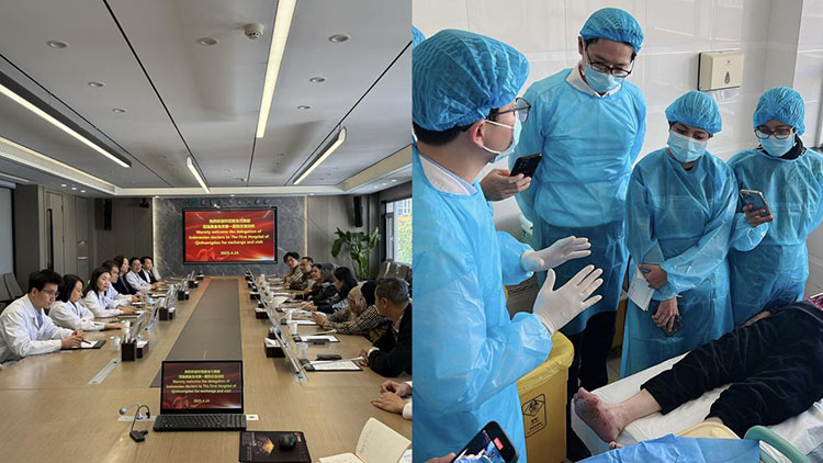 当天下午,访问团集中观摩了微粒皮种植手术直播。在手术观摩过程中,访问团不仅关注操作流程和术中细节,更对术前评估、供皮区选择、及术后处理等环节进行了详细记录与拍照留存。部分医生在观摩过程中频频向旁边医生低声讨论技术细节,对这项兼具技术性与临床实效性的创新术式表现出浓厚兴趣。议程最后,陈永翀主任对再生医疗技术的机制、适用领域及实际案例进行了系统讲解,其深入的专业分析和丰富的临床经验使在场的医生纷纷表示收获颇丰、受益匪浅。