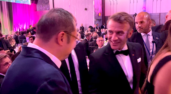 本年度全球公民奖授予了法国总统埃马纽埃尔·马克龙与阿根廷总统哈维尔·米莱等三位对全球事务做出卓越贡献的代表人物。颁奖晚会期间,徐鹏主席分别与马克龙总统和米莱总统进行了友好会谈。