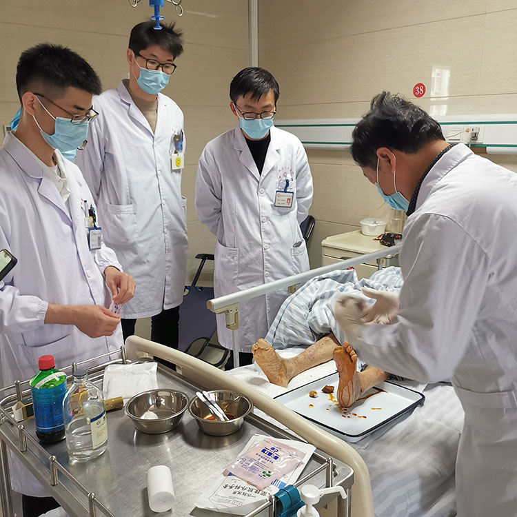 2023年3月28日,应芜湖市第一人民医院烧伤科梁其国主任邀请,中国中西医结合学会烧伤专业委员会医疗部张强主任会诊几例慢创病人,张主任边换药边讲解换药技巧及要点,后期还给科室医生培训了换药流程,得到大家的高度认可!
