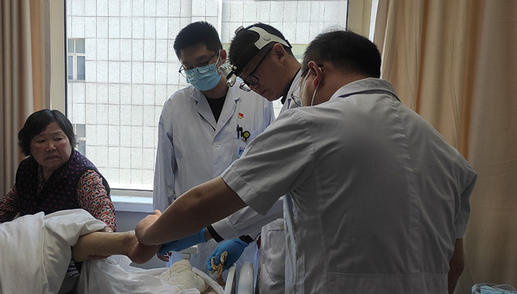 2024年5月15日,应如皋市中医院邀请,中国中西医结合学会烧伤专业委员会委员、南通市第三人民医院烧伤整形美容科孙记燕主任到该院会诊了5例患者(下肢溃疡1例、化脓性阴道炎1例、糖足溃疡3例),仔细探查创面实际情况后,与科主任一起对2例糖足患者实施了手术。术后对几例患者的今后治疗进行了商讨,并制定了一套详细的治疗方案,着重强调了运用再生医疗技术规范换药的重要性,得到全体科室人员的十分肯定!