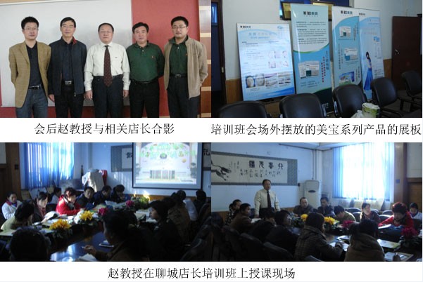 十月下旬,又分别在莱芜市山东益寿堂药业有限公司、聊城市利民大药店连锁有限公司培训所属旗下109个店长和骨干人员。赵瑞庆教授在店长培训班上介绍了美宝集团的发展过程以及生产的系列产品。重点讲解了美宝烧伤膏、美宝创疡帖、美宝疤痕软膏、美宝曲咪新乳膏和美宝降温贴的五大明星产品的药理作用、药物特点以及临床治疗适应症范围。与会人员一致表示赵瑞庆教授的讲课生动形象,达到了一讲豁然开朗的效果,为今后开发医疗终端市场打下了牢固的基础。
