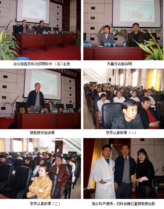 下午2;30分会议正式开始,会议由医务科科长刘贤明主持,参加听课人员包括靖宇县人民医院院长马永森院长,副书记张靖远;曹万辉,陈美森,刘成东副院长;外科,骨科,妇科,急诊科,中西科,内科,CT科,电诊科,医务科等多个科室共100多人。学员们认真听课,认真地做了笔记。