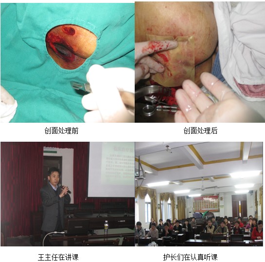 2月28日下午3时,王主任又应邀在该医院会议室为该医院全院护士长进行了院内“再生复原疗法难愈性创面治疗新进展”学术讲座,在学术讲座中,王主任结合临床图片对各种难愈性创伤,溃疡创面的规范处理方法与技巧做了详细讲解。专题讲座结束后,王主任还就与会的护士长提出的在临床中常遇到的一些治疗技术难题进行了详细解答。